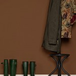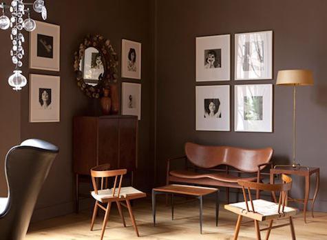 A pair of George Nakashima 1960s Grass Seat Chairs with walnut frames (the walls are painted in Farrow & Ball’s London Clay).