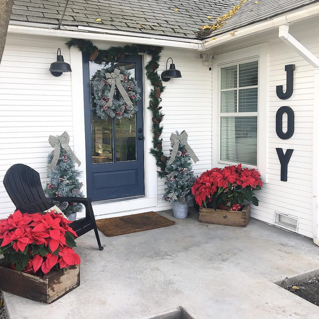 House exterior with a festive vibe Christmas decoration and from door painted in Hale Navy by Benjamin Moore. (via)