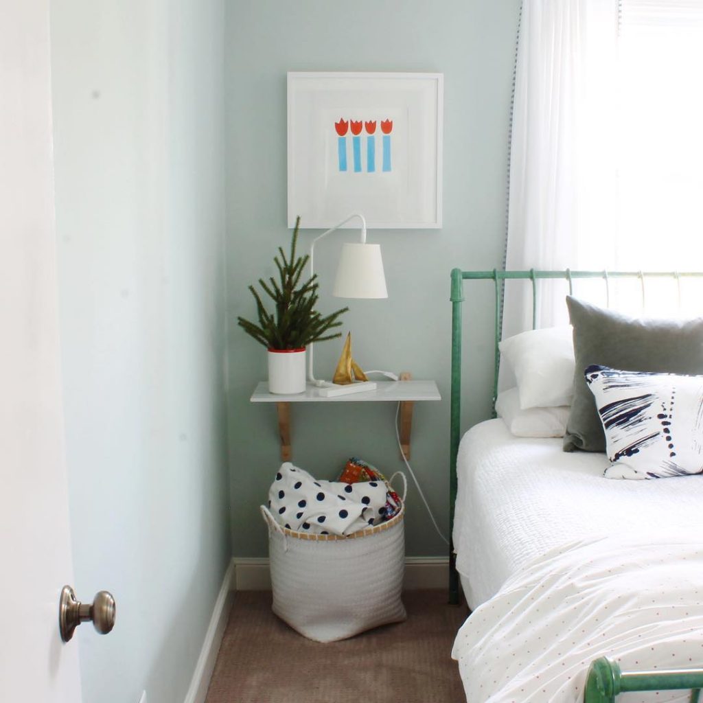 Woodlawn Blue is a great color choice for a tranquil bedroom setting. Via raisedranchdressing.