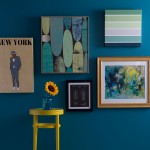 Naples Blue 2057-30 by Benjamin Moore featured in the shelving, looking fab against the crisp white of the trim and the yellow of the flowers in the fore front of this image.