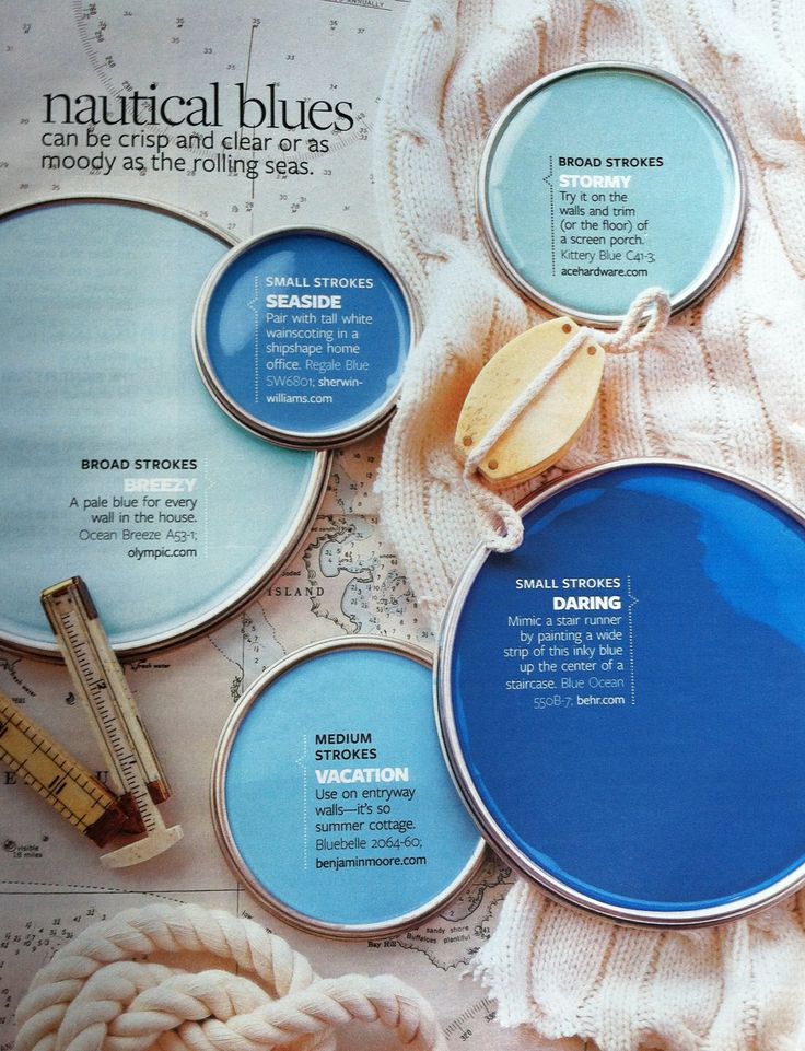 Paint Palette – Nautical Bluesby Interiors By ColorAugust 12, 2014June 29, 2016Paint Palette – Nautical Blues: Can be clear and crisp of moody as the rolling seas. Paint colors:Ocean Breeze by OlympicKittery Blue by Ace HardwareRegale Blue by Sherwin WilliamsBlue Ocean by BehrBluebelle by Benjamin Mooreby bhg More Like This Sherwin Williams Color Collections – Classic and Collected Olympic Paints Latest Paint Color Trends Colorize HGTV HOME™ by Sherwin-Williams – Softer Side 9 Most Favorite Aqua Paint Colors You’ll LoveTags:blue paint color palettesLeave a Reply Cancel replyYour email address will not be published. Required fields are marked *Name * Email * Website Comment * Δ