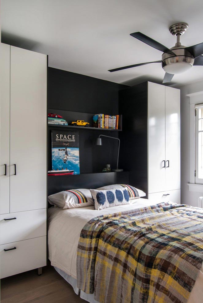 Regal Heights residence designed by MHouse Inc. Organised, almost staged modern residence in primarily black and white tones with features and accents throughout in yellow, teal and pink and black and white chevron pattern!