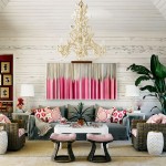 A saturated red wall ties the living space and guest bedroom together in this tropical home in the Bahamas by designer Alessandra Branca.