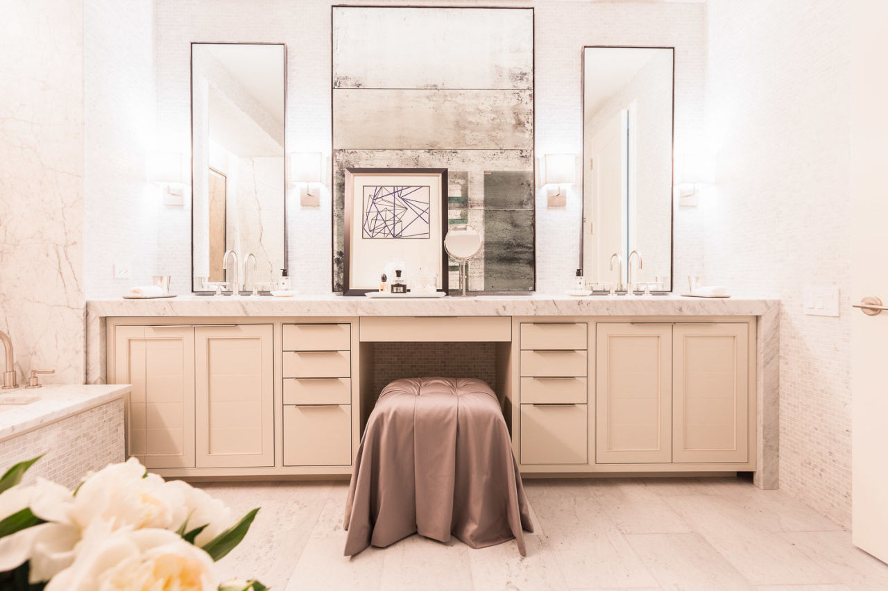 James incorporated steely grays and subtle neutrals that call to mind the metallic cityscape, while gold tones were used to evoke the sun’s rays. He also added in several shades of blue to represent the Great Lake bordering the city.