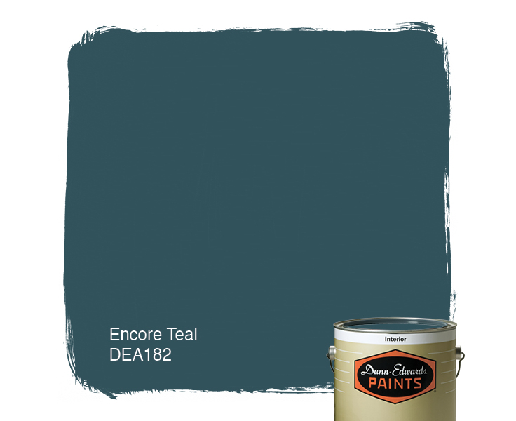 Dining room with a green/teal feature wall painted in Dunn Edwards Encore Teal. Via Michael Jessee-Smith.